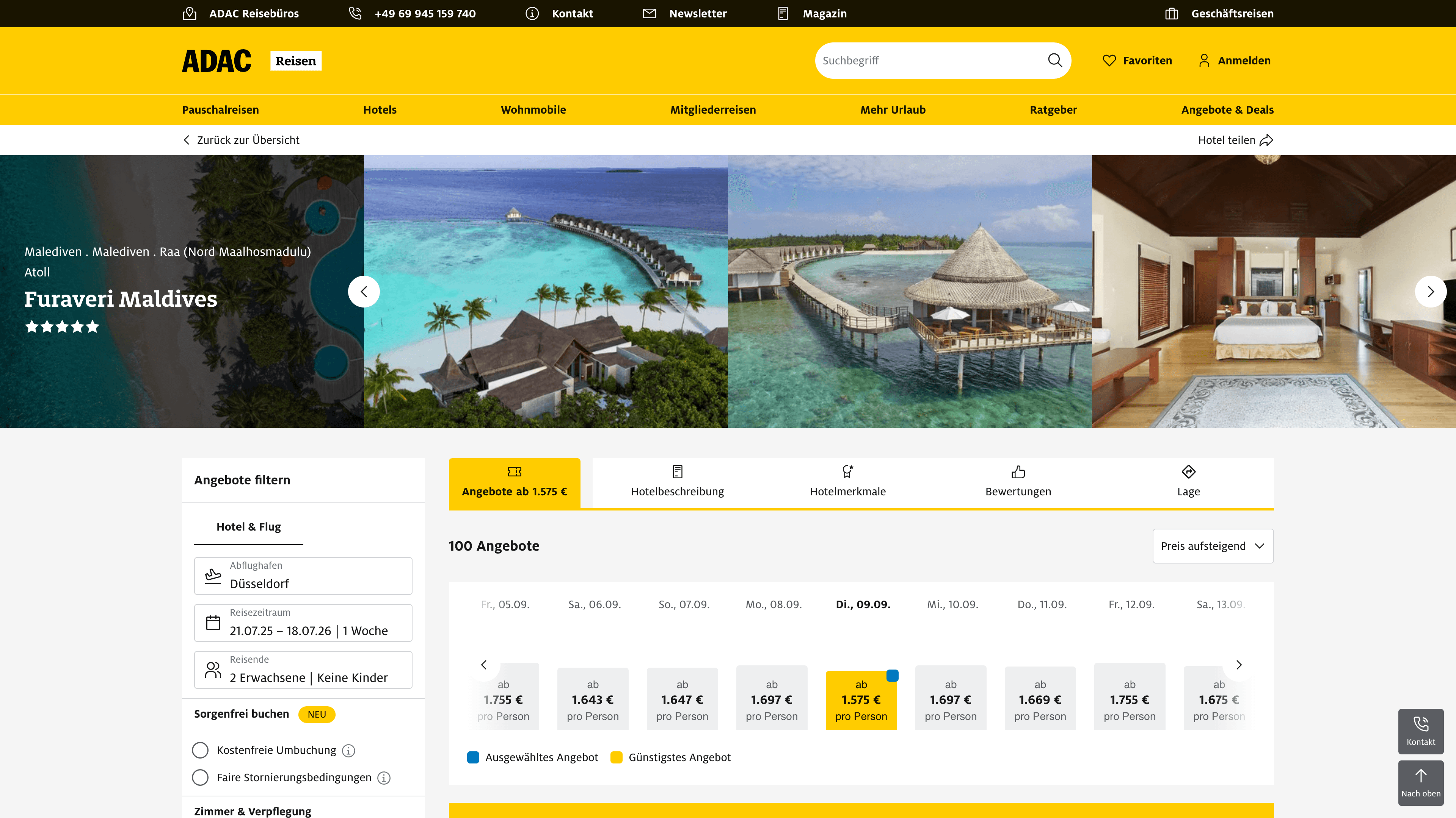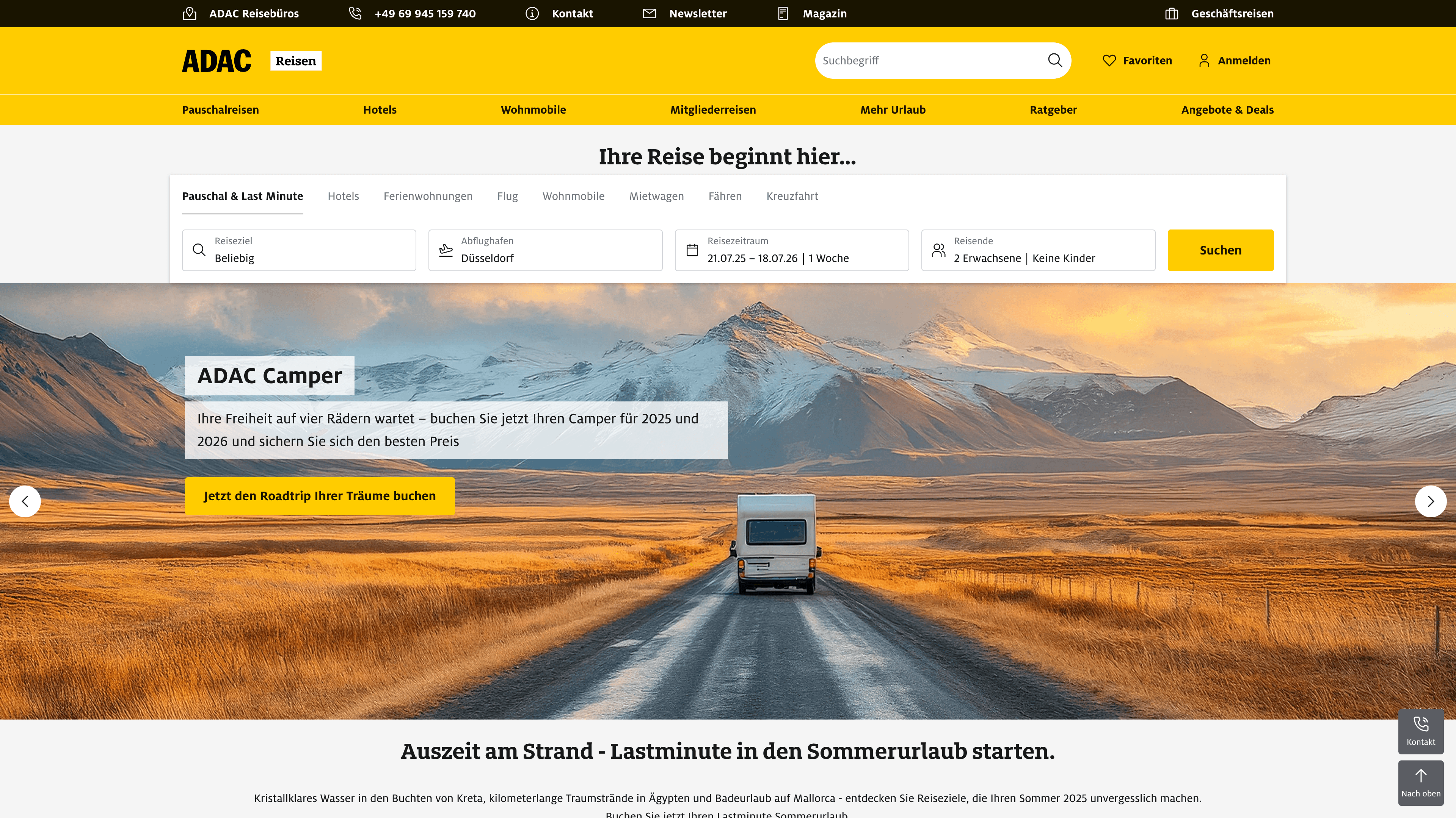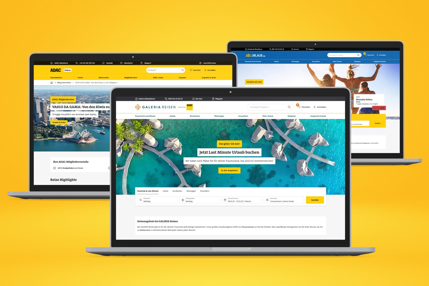 ADAC Reisen is a subsidiary of the ADAC regional clubs, operating more than 250 travel agencies and the online portals adacreisen.de, galeria-reisen.de, and urlaub.de. The company offers package, individual, and group trips from all major tour operators, as well as holiday homes, camper vans, rental cars, ferries, cruises, and exclusive, curated travel deals for ADAC members.